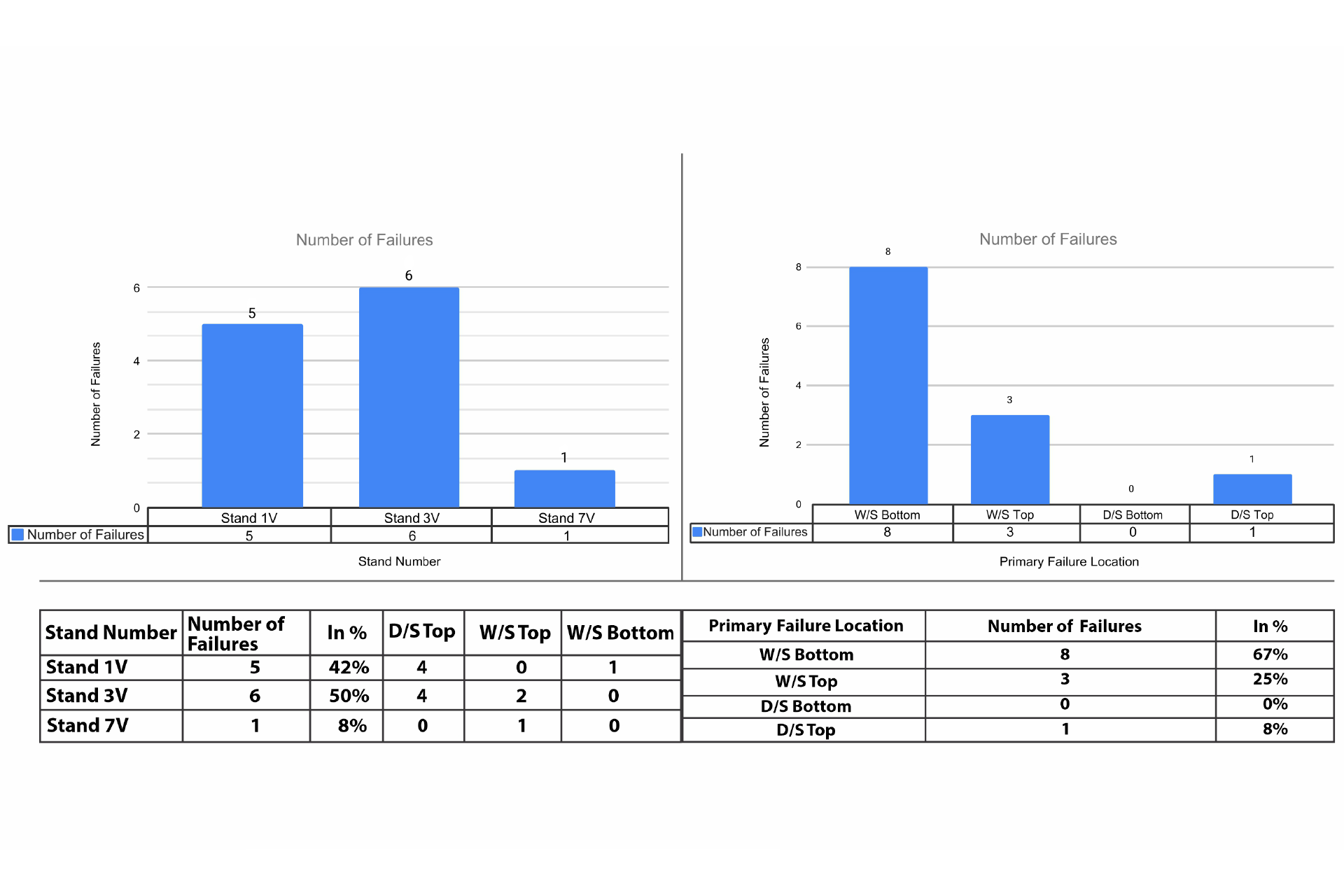 There were total of 12 chock bearing failures observed at NBM since 2015 till March 2021. Failures were mainly at Vertical stands no. 1, 3 & 7.